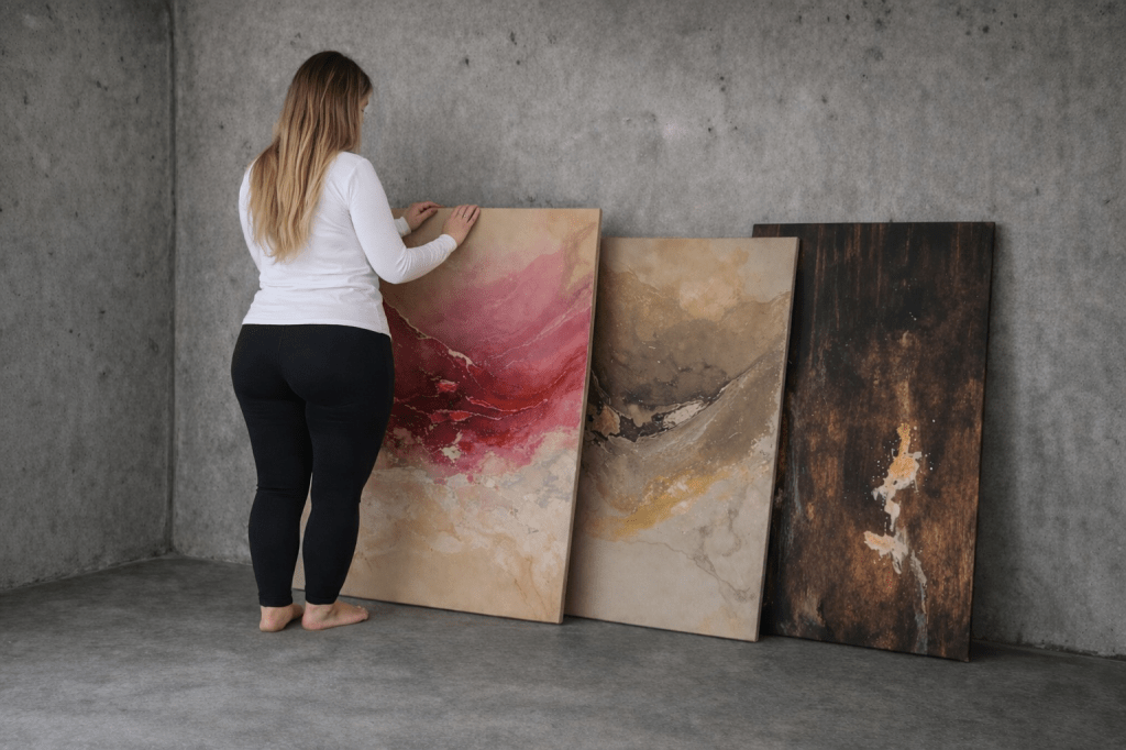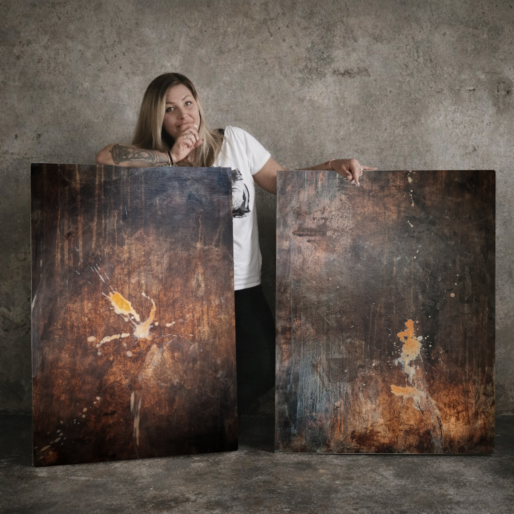 Min abstrakta konst föds ur intuition, känslor och önskan att berätta historier utan ord. Jag arbetar med djärva penseldrag, lager på lager-texturer och råa kontraster för att skapa målningar som är lika ofullkomliga som de är kraftfulla. Varje duk blir ett landskap av känslor, ett möte mellan sårbarhet och styrka, kaos och harmoni, tystnad och uttryck.Jag inspireras av naturen i alla former, vilket gör att varje verk kan hålla både mjukhet och kant. Den rustika, industriella och bohemiska estetiken som omger mig formar min palett och komposition, vilket ger mitt arbete en distinkt identitet, både modern och tidlös.För mig handlar abstraktion om frihet. Friheten att röra sig bortom regler och proportioner, att låta känslor leda vägen och att skapa något som talar direkt till själen.