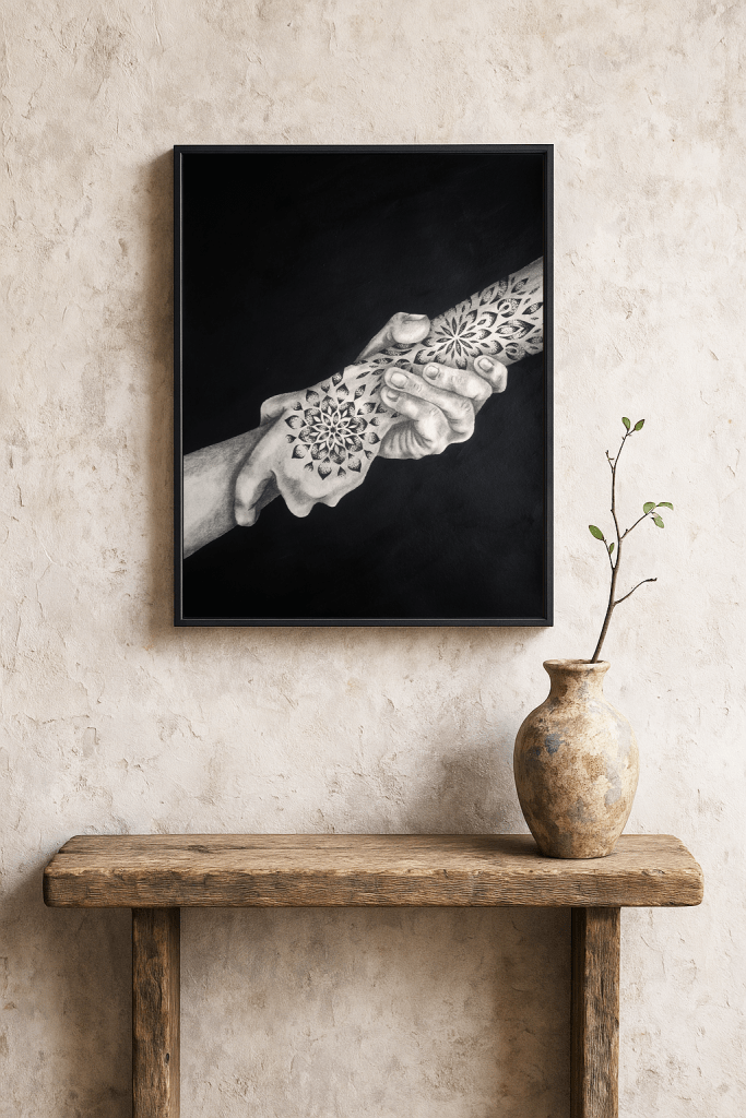 Mina målningar inspirerade av tatueringskulturen utforskar linjernas djärvhet, mönstrens rytm och berättelserna etsade i huden. Precis som tatueringar bär varje verk på lager av betydelse; styrka, identitet, minne och transformation.