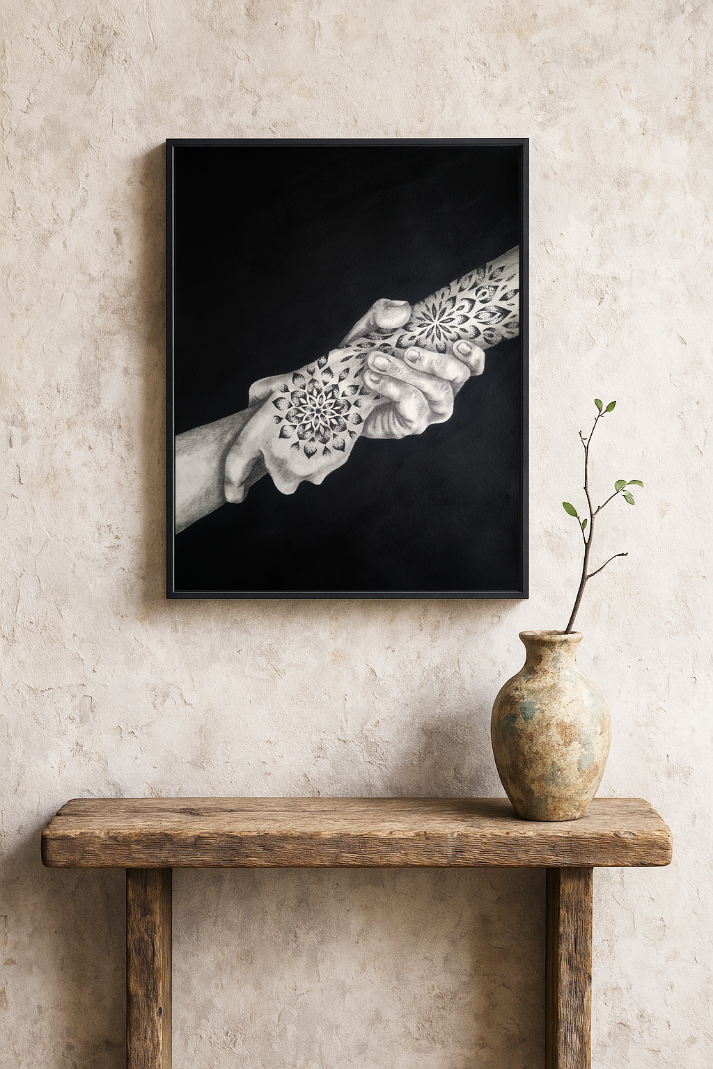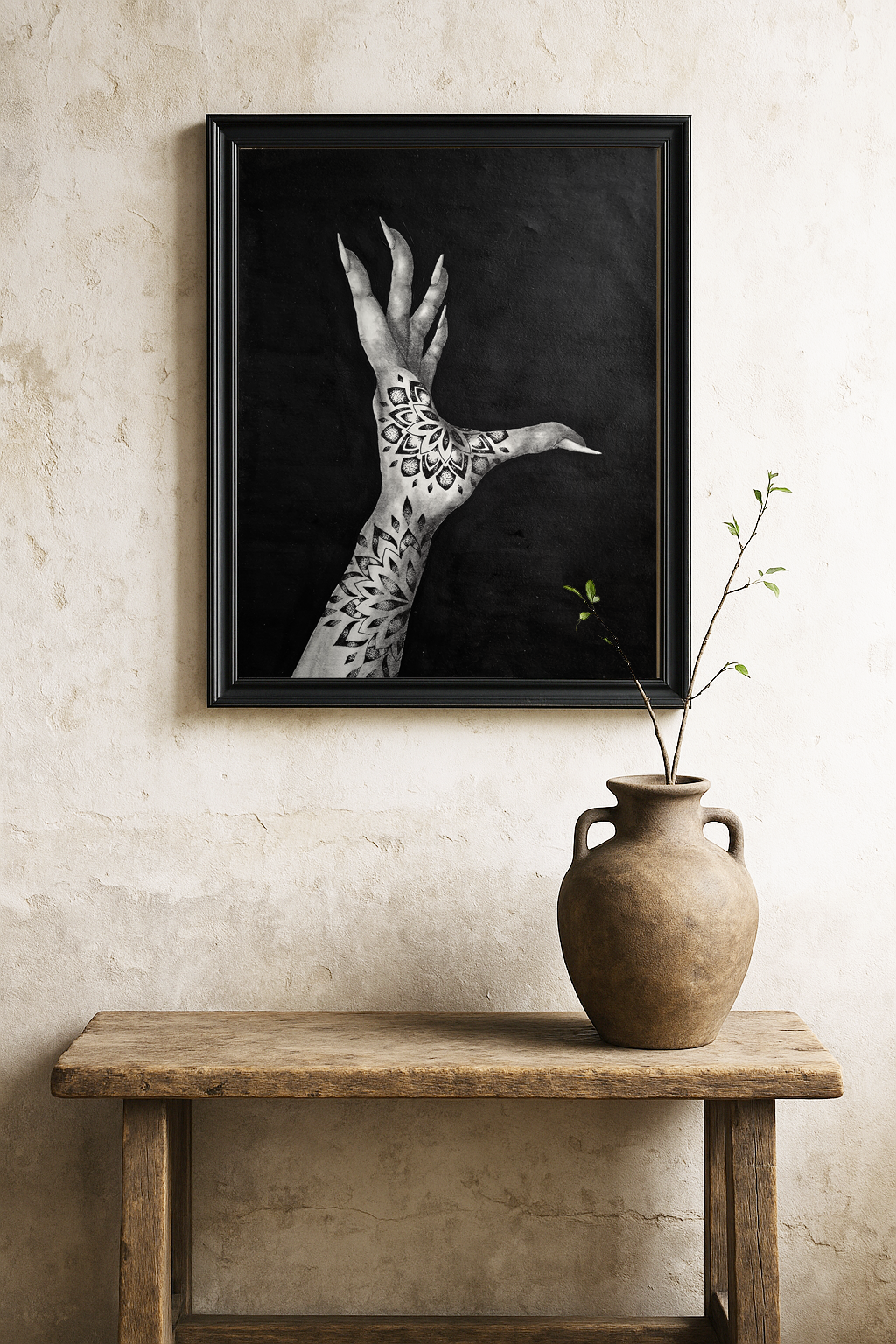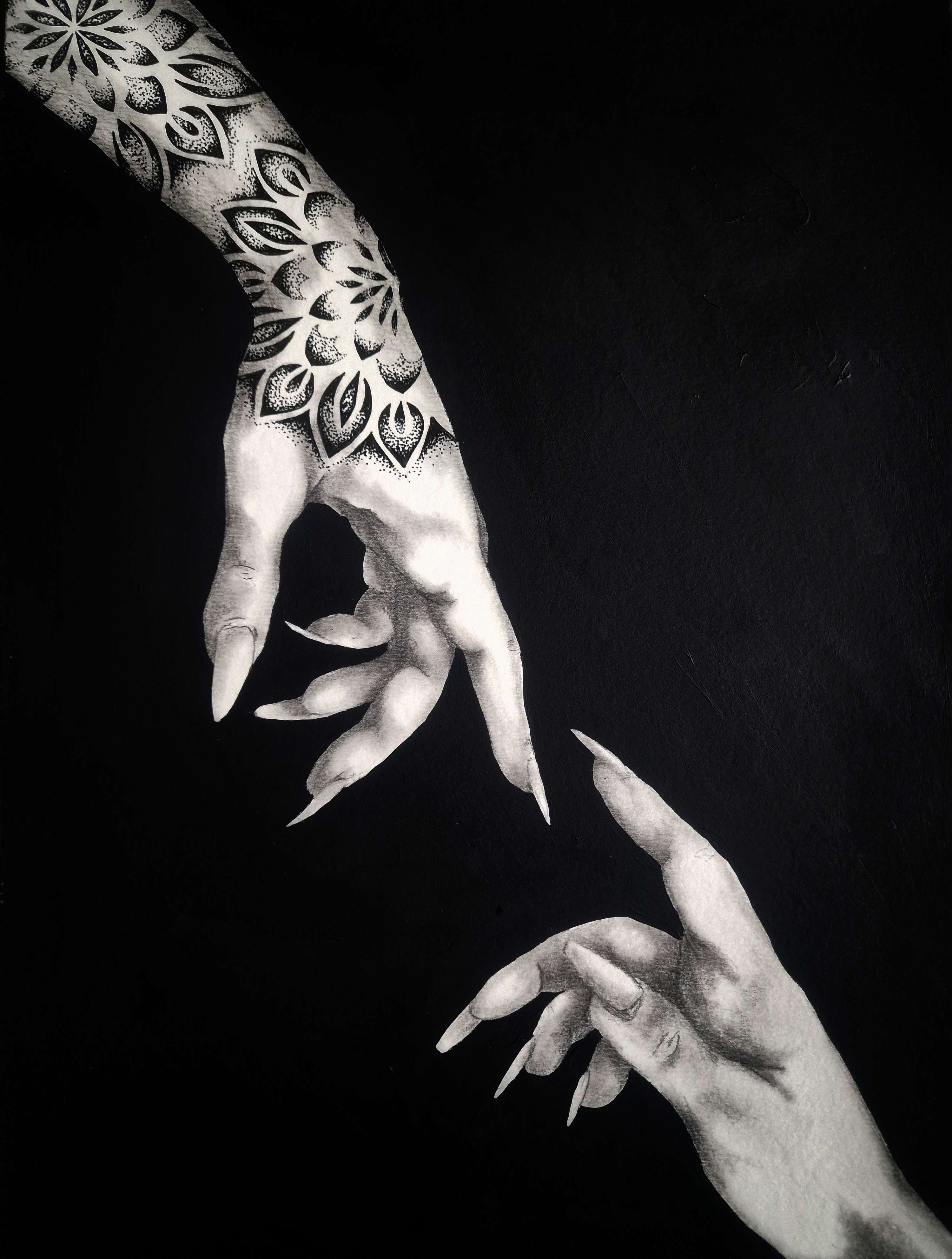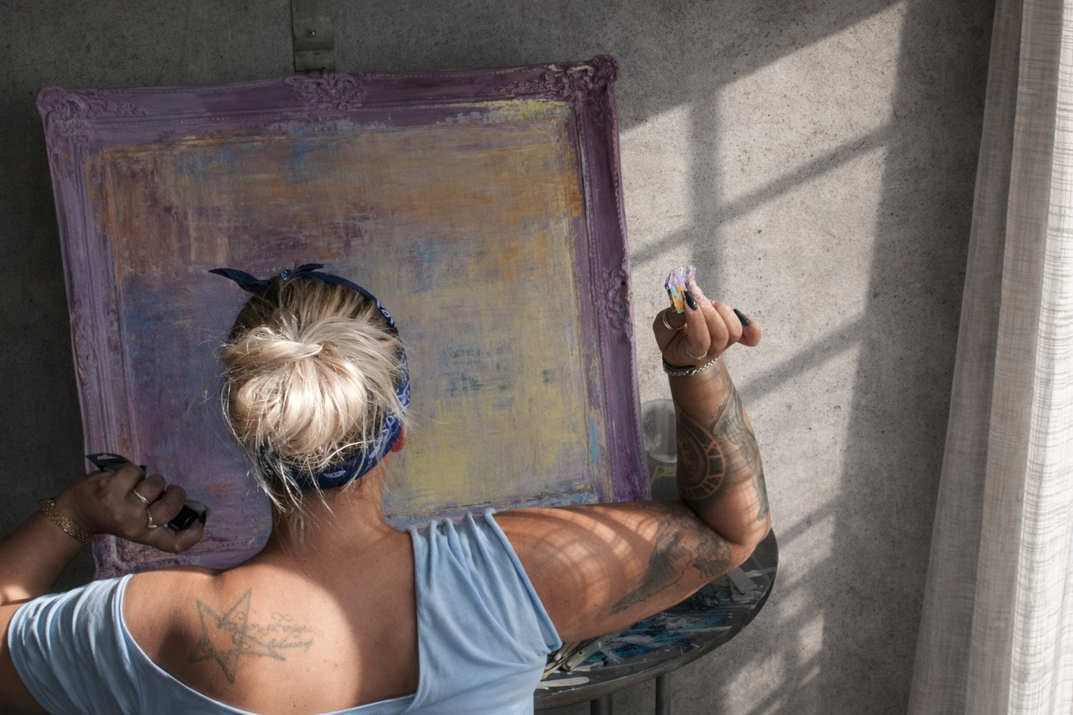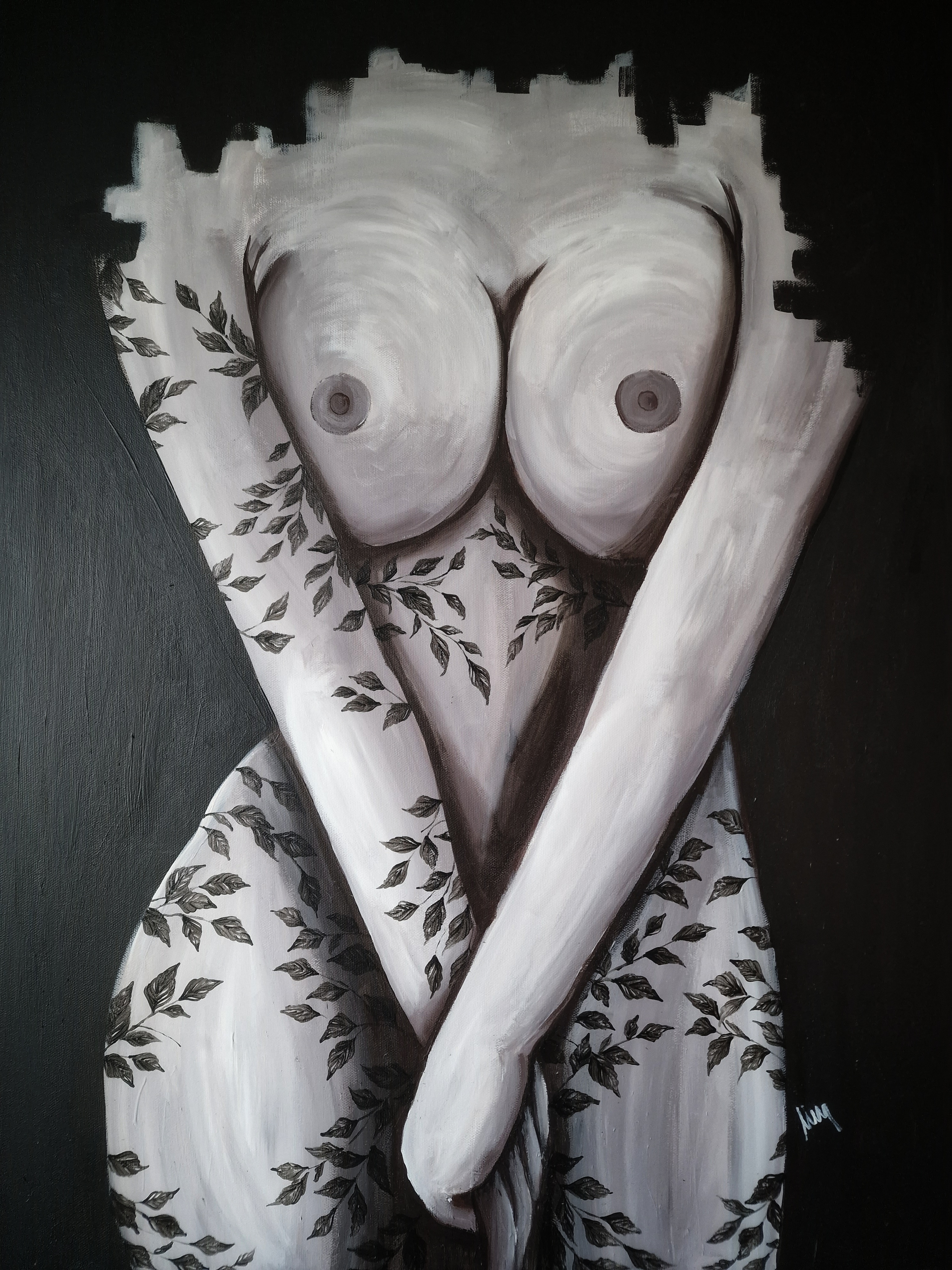 Mina originalmålningar är unika verk skapade med rå känsla. Varje verk är djupt personligt men ändå universellt relaterbart, inspirerat av teman som kroppspositivitet, feministiska perspektiv och tatueringskultur.